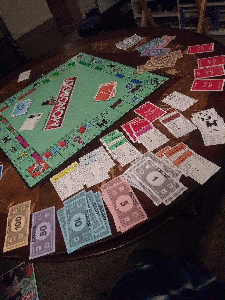 This was the last move he made. There’s nothing more satisfying than taking your 8 year old’s last $6 once he lands on NORTH CAROLINA Ave. (Wrestling joke.)